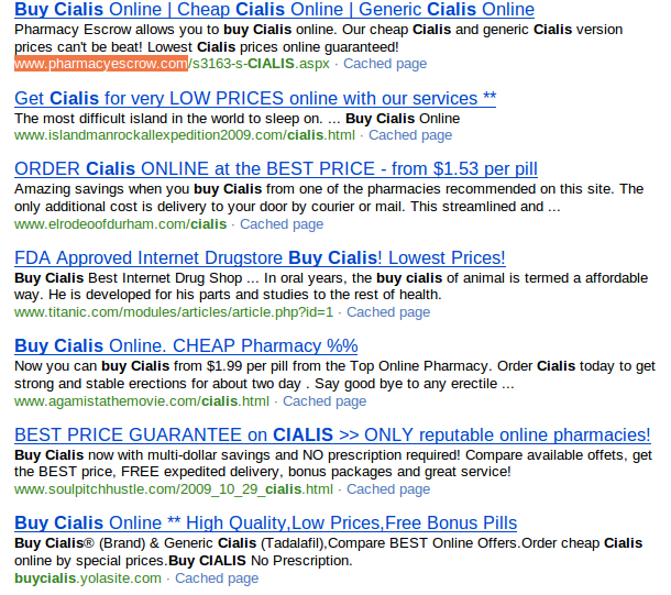 We all know Xrumer backlink spamming is more rampant than ever, an the buy Cialis keyword is a perfect example of how Google can’t do anything about it.