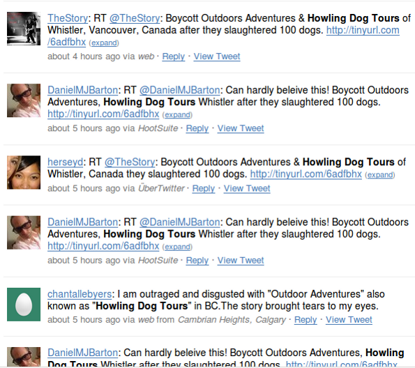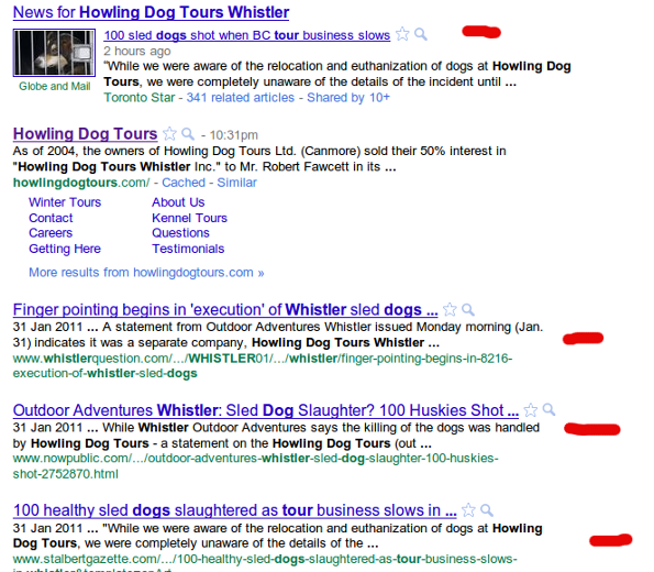 There is a hot new topic going around about the slaughtering of around 100 sled dogs in Whistler BC. While everyone is currently calling on a full out Boycott of Adventures Tours Whistler, they’re saying they had sold the dogs to Howling Dog Tours of Whistler BC. Howling Dog Tours has already place the blame on some other bloke who is supposedly the killer of all those cute puppies. While it’s almost too late for them to recover in the next few years, it sure makes for an interesting reputation management post. Regardless of this, living in Whistler BC is still one of the best spots in North America!