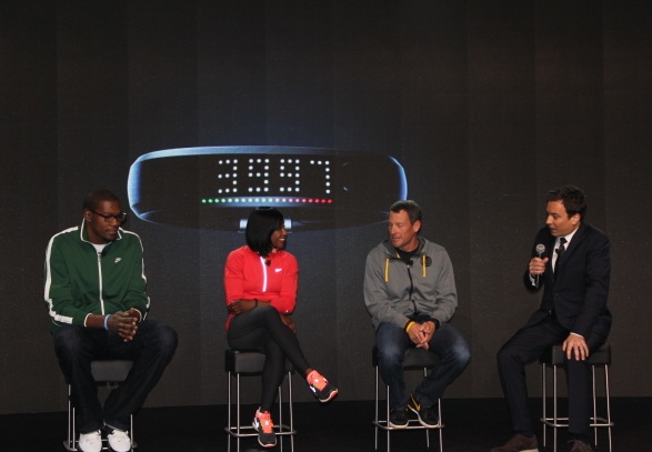 The huge press conference to finally reveal the mystery product involved out plenty of stars (and their Twitter followers). Pictured here at the event is Kevin Dudrant, Carmelita Jeter, Lance Armstrong and host Jimmy Fallon. With coverage hitting every major news source, blog and social media platform as a rusult, Nike has seen instant exposure for their FuelBand that few companies outside of Apple rarely see.