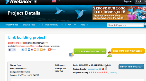 For those of your who enjoyed taking a gander at the hilarious post we wrote in November titled “Can I Get 5000 Links Please“, I bring you an even better one. The freelancer sites are littered with the craziest link building offers one can find. No legit company in the world would be out trying to snag deals like this, but instead these are affiliate marketers going after spam links. This one in particular caught my attention on Twitter and made me almost choke on my coffee here.